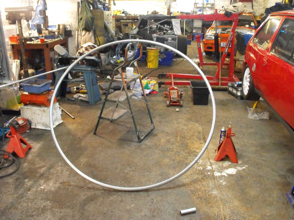 The hoop is put together as a whole and then the fixing sections are drilled and tapped with the wheel completely assembled: